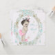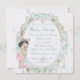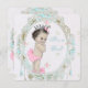 Petite fille douce avec pantalon rose rumba, arc-en-cheveux, pantoufles lapin et couronne princesse sur un joli rose et bleu turquoise shab arrière - plan chic. Vous pouvez customiser cette adorable invitation de baby shower rose et bleu turquoise avec les détails de votre événement dans le style de police, la couleur de police et le libellé de votre choix.