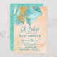Mint Green Parties scintillant Rose Boys Baby shower Invitation. Baby shower invitation que maman sera aimer. Les mots oh bébé sur un arrière - plan beige aquarelle à l'avant et un arrière - plan parties scintillant à l'arrière. Ajoutez vos informations pour un invitation de baby shower.