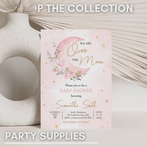 Invitation Baby shower rose lune et étoiles