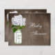 Les invitations neutres de baby shower de pays rustique élégant pour des filles ou des garçons avec une illustration vintage mignonne de fleur de pot de maçon en verre vert et blanc et d'hortensia blanc sur un chêne brun foncé chic minable élégant ont effacé l'arrière - plan en bois patiné d'effet de grain. Invitations modernes chics, à la mode, à la mode parfaits pour le ressort, été, chute/automne et douches d'hiver. Tout les texte peut être facilement customisé pour répondre à vos besoins et vous pouvez changer le style de police, la couleur et la taille de la police si vous désirez. Si vous avez besoin de n'importe quelle aide customisant votre produit svp me contactez par mon magasin et je serai heureux d'aider. NOTEZ SVP : Tous les invitations sur Zazzle ont des images imprimées d'appartement.