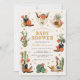 Invitation au Baby shower sauvage de l'Ouest. Préparez-vous à une balade sauvage dans le Far West ! Cette invitation élégante est amusante et parfaite pour un baby shower à thème occidental. Unique et original, avec des cactus dessinés à la main et aquarellés, des bottes de cowboy et des casquettes. Ils sont faciles à customiser et vous emmèneront, vous et vos amis, dans une passionnante aventure dans le désert.