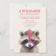 Le thème du baby shower de la forêt inspiré Wild one rock n roll met en vedette le raccoon de bébé avec mohawk rose et le coeur autour de l'oeil.