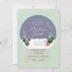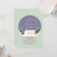 Winter Snowglobe Baby shower Invitation avec bleu et vert doux, scène hivernale moderne avec pins et cerfs