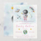 Célébrez l'arrivée prochaine de votre petite étoile avec cette invitation magique de baby shower à thème spatial. Avec l'espace imaginaire Astronaut Earth, roquettes et étoiles tournantes en couleur rose marine et or.