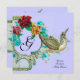 Design floral élégant, drôle de style vintage avec un bébé et cigogne volant parmi les belles roses, roses rouges, fleurs de printemps bleu turquoise de Bulgan Lumini (c).
