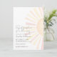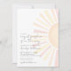 Un petit rayon de soleil est sur le chemin Baby shower Invitation. Célébrez l'arrivée à venir avec ce design simple et subtil qui saisit la chaleur de la saison. L'expression "Un petit rayon de soleil est sur le chemin" est placée doucement dans le coin inférieur gauche dans des tons gris doux, ajoutant une touche douce et délicate. Sur le côté droit de l'invitation, un demi-soleil défraîchi dans les tons classiques jaune, orange et un peu rouge apporte une touche chaleureuse et joyeuse au design. Les teintes douces et ensoleillées du soleil créent une atmosphère joyeuse tout en gardant l'ensemble propre et minimaliste. Ce design neutre pour les hommes et les femmes est parfait pour un baby shower doux et sobre avec un thème lumineux et accueillant. Il est entièrement personnalisable : vous pouvez ajuster les couleurs de police et l'arrière - plan en fonction de votre style personnel ou de votre palette d'événements. L’arrière de l’invitation est laissé simple et vide pour une finition polie, mais vous pouvez le personnaliser davantage si vous le souhaitez. Disponible sous forme d'invitation imprimée ou de fichier numérique téléchargeable, ce design ajoute une touche de soleil à votre célébration de baby shower.