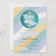 Super bébé ! Cette jolie invitation à la douche pour bébé garçon est parfaite pour un baby shower hippie, rétro ou les années 70 thème. Avec son ballon disco, son texte les années 70 et ses vagues colorées bleu pastel, il est amusant et fantaisiste, tout comme un bébé rebondissant.