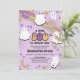 Célébrez Halloween avec cette Super Petite Invitation Baby shower Boo! Avec des fantômes ludiques, une boule de disco pétillante, un citrouille violet, une lune brillante, de petites étoiles et des fleurs dainty, le tout face à un arrière - plan violet vibrant, cette invitation apporte une ambiance rétro amusante à votre baby shower. BBS492