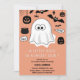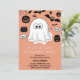 Invitation Baby shower à thème Halloween Ghost : Avec une attention particulière aux détails et une touche d'enchantement, ces invitations à la douche bébé Halloween présentent des illustrations captivantes, des couleurs vives et des polices de caractères ludiques.