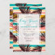 Tropical Palm Feuilles Summer Stripes Baby shower Invitation. Ce design moderne personnalisé de baby shower de plage de luau d'été peut facilement être personnalisé avec vos détails de douche personnalisés.