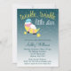 Une petite invitation au baby shower à thème étoile scintillante. Avec un agneau endormi, une lune et des étoiles illustrées dans les tons bleu turquoise et jaune. Parfait pour un petit baby shower garçon. Personnalisez facilement votre fête !