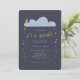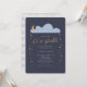 Cette mignonne invitation au baby shower présente un ciel nocturne avec des motifs subtils sur le nuage et la lune de croissant et des étoiles dispersées qui encadrent le design.