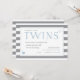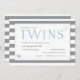 Baby shower mignon et hanche invitation avec rayures grises et blanches avec accents bleus pour jumeaux! Customisez l'introduction pour dire combien! Une autre option pour plus de multiples est disponible.
