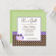 Une invitation mignonne et moderne de douche de bébé de hibou. Comporter le pois et les rayures aux nuances de pourpre, de brun et de vert.