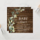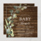 Eucalyptus Verdure Aquarelle botanique Succulente Printemps Genre Neutre bébé garçon ou bébé fille bébé Douche bébé Invitations sur bois rustique arrière - plan extérieur de pays - comprend belle et élégante typographie avec feuilles botaniques modernes et verdure pour la spéciale Mère à être célébré.