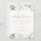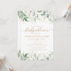 Découvrez le raffinement intemporel avec cette élégante invitation au baby shower à thème botanique, avec de la verdure et des feuilles d'eucalyptus décorés d'or. Idéal pour les célébrations de bébé classiques et neutres.