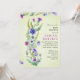 Célébrez l'arrivée d'un nouveau bébé avec notre Aquarelle Fleur Fleur Fleur Fleur Fleur Fleur Fleur Vert pâle Invitation Baby shower. Ce design enchanteur capte l'essence du printemps avec un étonnant éventail de fleurs sauvages dans les tons bleu, rose magenta et violet ornant le côté gauche de l'invitation contre un arrière - plan vert pâle adorable. Ajoutez une touche de fraîcheur aux beaux feuilles bleutés et verts qui complètent l'étalage fleuri. Vous pouvez rendre cette invitation vraiment unique en customisant le texte sur le devant pour convenir à votre occasion spéciale. Sur le dos, vous trouverez d'autres arrangements floraux qui encadrent magnifiquement les parties supérieure et inférieure, complétant l'esthétique générale de cette invitation charmante.