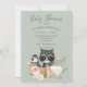 Invitation Baby shower vert Racoon Watercolor Sage