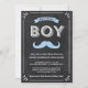 Cette vieille-timey invitation mignonne de baby shower de couples inclut une moustache lunatique et le texte "ils ont un garçon." La conception de tableau-style inclut également un cadre vintage d'amusement et un modèle de couleurs bleu-clair et blanc.