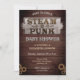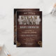 Éblouissez vos invités avec cette invitation au baby shower rustique avec une belle conception métallique brossée contre un arrière - plan en bois rustique. Ajoutez simplement les détails de votre événement sur ce modèle facile à utiliser pour en faire une invitation unique. Retournez la carte pour révéler les engrenages rustiques au dos de la carte.