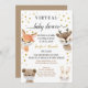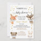 Baby shower virtuel avec des bébés animaux de la forêt, ours, renard, cerf et lapin.