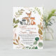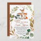Invitation au baby shower de bois avec des feuilles verts et un groupe d'adorables animaux de la forêt