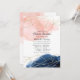Invitation de baby shower interurbain virtuel branché en ligne avec éclaboussures de peinture bleu marine et rose vif et cadre géométrique or.