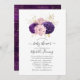 Élégante fleur rose et violet en ligne invitation de baby shower virtuel longue distance avec des accents faux feuille d'or et une calligraphie vintage inversée personnalisable aux détails de votre événement.