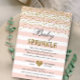 Invitation Baby Sprinkle Confetti Rayure Rose Poudré Or