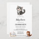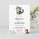 Babyshower chat invitation Adorable bébé douche invitations avec une aquarelle illustration d'un chaton tabby dans un champ de fleurs sauvages. Conception hors centre avec accents de script. L'envers est vert sage. Purr-fect pour un baby shower à ressort.