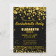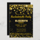 Invitation de fête de bachelorette moderne et élégante avec une riche parties scintillant de confettis brillante d'or foncé sur un arrière - plan noir.Vous pouvez facilement customiser le texte pour toute occasion si vous voulez. Vous pouvez également modifier la couleur de l'arrière - plan. Conception par Amelia Carrie pour zazzle.com/GlitterInvitations