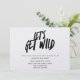 Des invitations amusantes à la fête de bachelorette "Let's get wild" sont une façon amusante d'invitation l'équipe de la mariée pour une nuit en ville pour sa fête de bachelorette. Customisez avec les détails de la soirée. L'invitation revient à coordonner le poster de animal à l'envers.