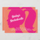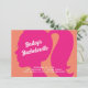 Cette amusante invitation à la bachelorette fuchsia et orange est accentuée par une silhouette rose vif d'une fille avec une queue de poney, ce qui en fait un parfait pour une soirée Barbiecore ! Si d'autres éléments de coordination sont nécessaires, contactez-nous à l'adresse prettyfancyinvites@gmail.com .