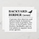 Clean typographic design defining a backyard birder. For nature lovers who observe and attract birds in gardens, balconies, and local parks. Perfect for home birdwatchers.