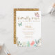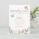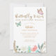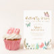 Carte modèle d'invitation à la fête d'anniversaire douce avec aquarelle rose et papillon à la menthe avec faux or jardin floral. Le texte en haut dit "papillon embrasse et souhaite l'anniversaire." Parfait pour une fête de fille au printemps.