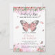Une carte douce ornée de papillons aquarelles en rose et menthe doux, nichés parmi un jardin floral doré faux. Présentant la phrase charmante 'Baisers de papillon et vœux d'anniversaire', cette invitation est parfaite pour une célébration printanière pour votre petite fille. Personnalisez-la avec ses détails pour rendre son jour encore plus spécial !
