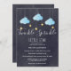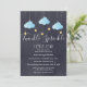 Avec de mignons nuages bleus et des étoiles d'or sur des cordes, sur un chic arrière - plan de tableau noir shabby, cette invitation à la douche pour bébé, à la douche ou aux couples est parfaite pour tous les petits garçons qui sont en chemin. Ajoutez les détails de votre célébration en blanc pour créer l'invitation parfaite. Conçu par Thisisnotme©