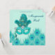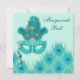 Masque de ballon masqué élégant avec plumes de paon. Couleurs bleues, vertes et turquoises. Customiser la couleur du papier, le type d'événement, le style de police et les couleurs de police.