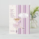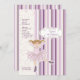 Une invitation charmante avec une ballerine "découpée" contre un arrière - plan à rayures roses et violettes recouvert d'un motif de coeurs, de fleurs et de coeurs. Idéal comme invitation à la fête d'anniversaire ou récital de danse.
