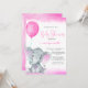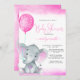 Invitation ballon rose baby shower d'éléphant mignon