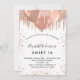 Pour un élégant Sweet 16, 16e anniversaire. Une arrière - plan blanche design. Décoré de gouttes d'or rose et de ballons. Personnalisez et ajoutez un nom, un âge et des détails de la fête. Le nom est écrit avec un script de style manuscrit
