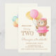 Invitation Ballons colorés mignon ours fille 2e anniversaire