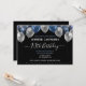 Ballons élégants en faux argent et en parties scintillant bleue sur la bordure supérieure. Tout le texte est ajustable et facile à changer pour vos besoins de partie. Super élégant à l'exception de la date anniversaire design modèle de fête. n'importe quelle année, l'âge peut être changé. Élégante typographie moderne et élégante