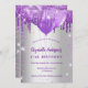 Pour un élégant 18ème anniversaire (ou tout âge). Un arrière - plan élégant à l'allure fausse argent. Décoré de faux parties scintillant violet et de ballons. Personnalisez et ajoutez un nom, un âge et des détails de la fête. Le nom est écrit avec un script de style manuscrit