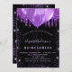 Pour un élégant Quinceañera, 15ème anniversaire. Un arrière - plan noir élégant. Décoré de faux parties scintillant violet et de ballons. Personnalisez et ajoutez un nom, un âge et des détails de la fête. Le nom est écrit avec un script de style manuscrit