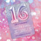 Invitation Ballons violet et rose 16e anniversaire