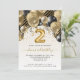 Cette invitation festive de deuxième anniversaire comprend une guirlande d'arcs en ballon noir et or sur un ballon en fausse feuille d'or numéro "2" et des rubans et des confettis noirs et or. Personnalisez le texte avec le nom et l'anniversaire de votre enfant dans un élégant script d'écriture noire et les détails de la partie en noir sans serif police sur un arrière - plan à l'ombre or pâle. La conception de l'arc à ballon et des confettis est répétée à l'envers de la carte.