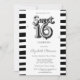 Un ballon argenté moderne, chic et glamour Sweet 16 sur un arrière - plan rayé noir blanc.