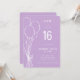 Faites de son anniversaire un souvenir inoubliable avec cette invitation à la lavande dessinée à la main et à l'anniversaire blanc. Avec des illustrations de ballons ludiques et une typographie audacieuse dans un agencement chic et moderne, cet invitation élégant est parfait pour célébrer n'importe quel jalon, qu'ils atteignent 16, 18, 21, 30, 40, 50 ou plus ! Cette invitation entièrement personnalisable vous permet de personnaliser le nom, l'âge, les détails de la fête et les informations RSVP. La palette de couleurs tendance ajoute une touche féminine amusante, idéale pour les filles, les ados et les femmes, que vous soyez l’hôte d’un brunch, d’une fête d’anniversaire ou d’un dîner.