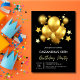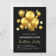 Invitation Balloons dorés soyeux Étoiles Anniversaire noir